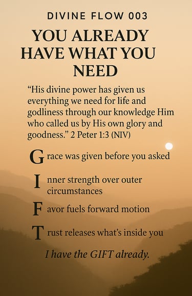 Stop waiting for the right moment, breakthrough, or external sign. God already placed what you need inside of you. This devotional breaks down 2 Peter 1:3 and shows you how to activate grace, inner strength, favor, and trust right where you are. If you’ve been feeling delayed or disqualified—this one is for you.