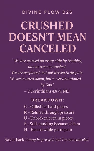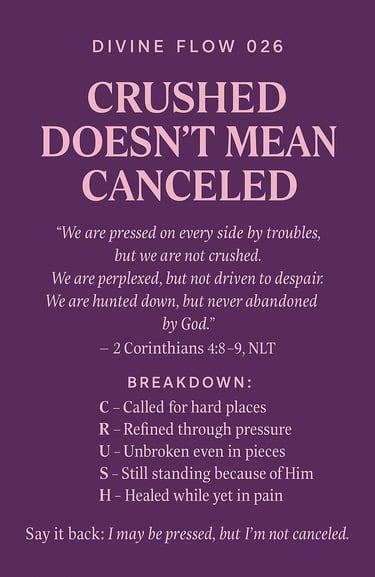 God doesn’t throw you away when you’re under pressure. This devotional reminds you that being crushed is often part of your calling — not a sign of disqualification. Based on 2 Corinthians 4:8–9, it’s a word for anyone who’s still standing in pieces.