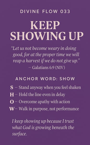 Lord, strengthen my hands when I feel invisible. Teach me the power of persistence. Show me that every quiet yes is noticed in heaven. Give me grace to keep showing up when results don’t match the sacrifice. Anchor me in Your timeline, not mine.