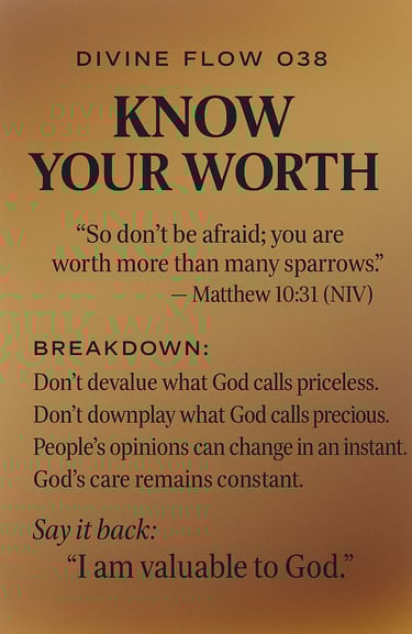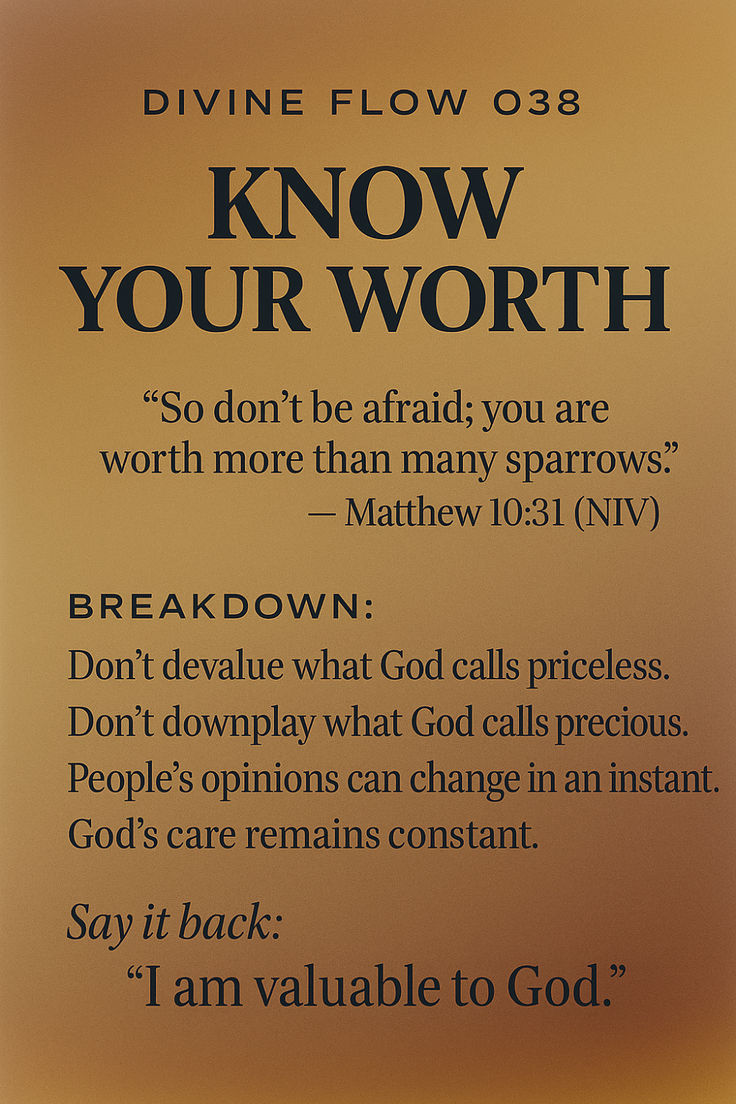 When insecurity speaks loud, remember who defines your value. This Divine Flow devotional anchored in Matthew 10:31 helps reset your worth from God’s perspective — not people’s opinions. You’re not fragile or forgotten. You’re seen, priced, and protected by the One who never changes.