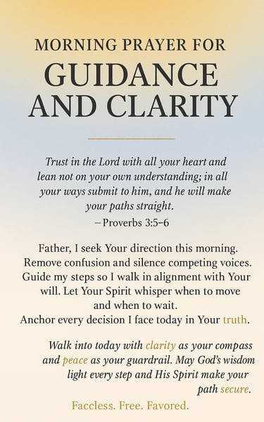 A powerful morning prayer for guidance and clarity. Trust God to light your path, silence confusion, and lead you with peace and wisdom today.