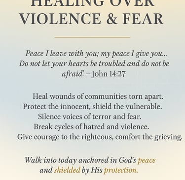 Pray for peace and healing in a world marked by violence and fear. Ask God to bring safety, restoration, and courage.