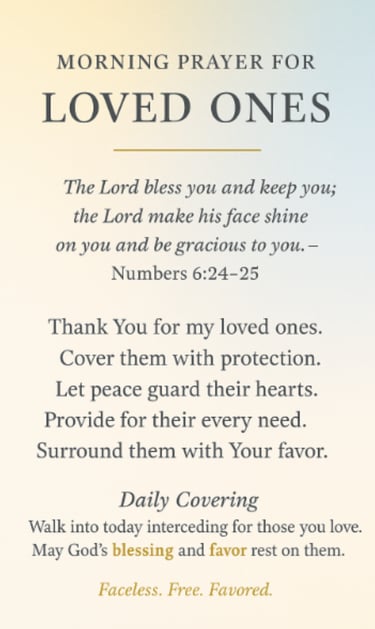 Begin your day with this heartfelt prayer for loved ones. Ask God to cover your family and friends with protection, peace, and blessing.