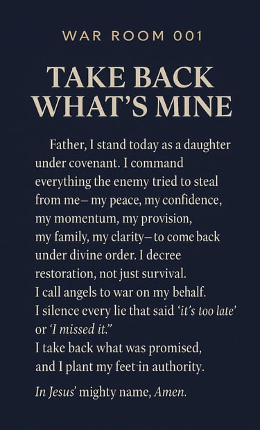 WAR ROOM 001: Take Back What’s Mine (Deliverance Prayer for Restoration + Authority)