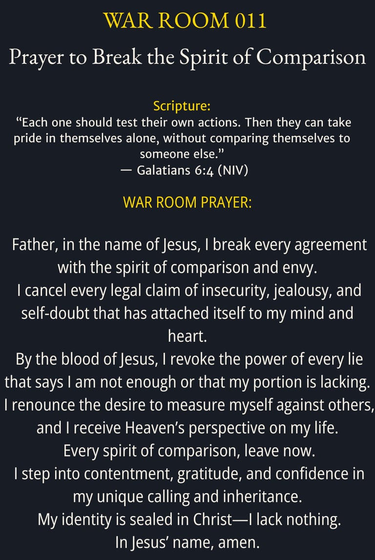 Today, the legal right of comparison is revoked. Your value is not determined by what others have—your identity is secured in Christ alone. Freedom begins where comparison ends.