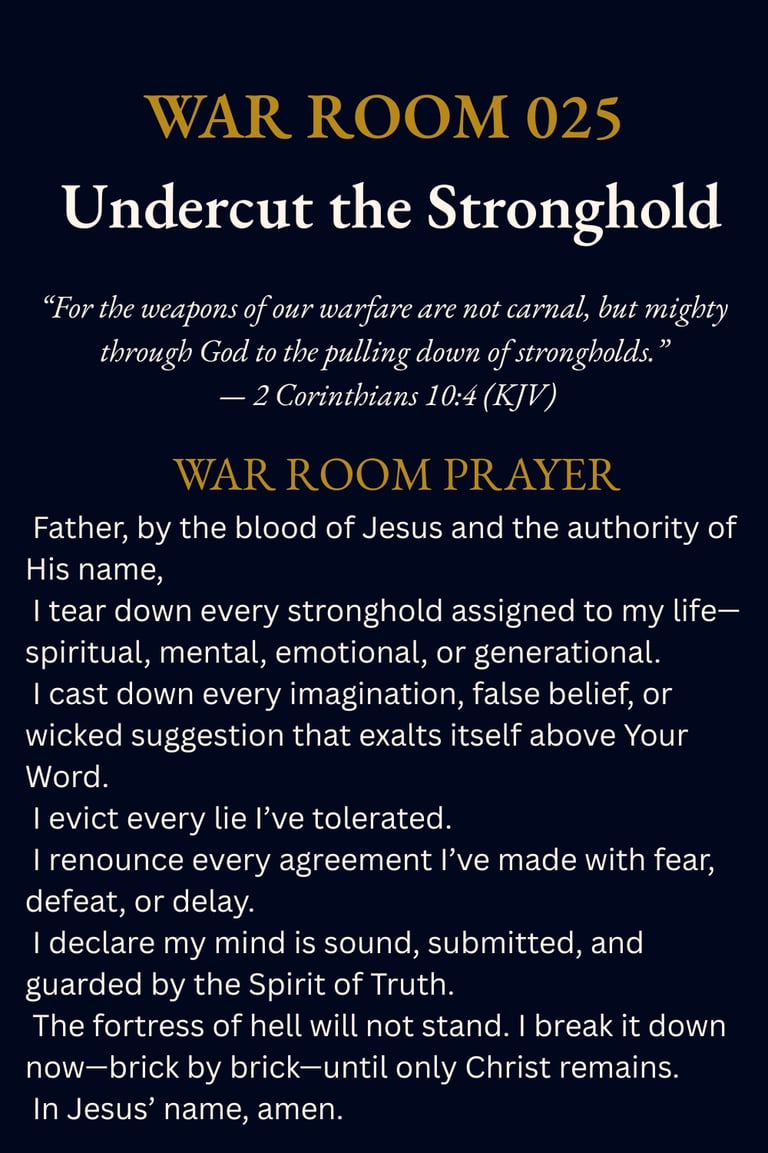 Spiritual warfare isn’t just about resisting darkness; it’s about legally evicting every stronghold that has taken residence in your mind, your lineage, or your atmosphere. You have the right and the command to demolish every fortress the enemy built—brick by brick—until only the truth remains.