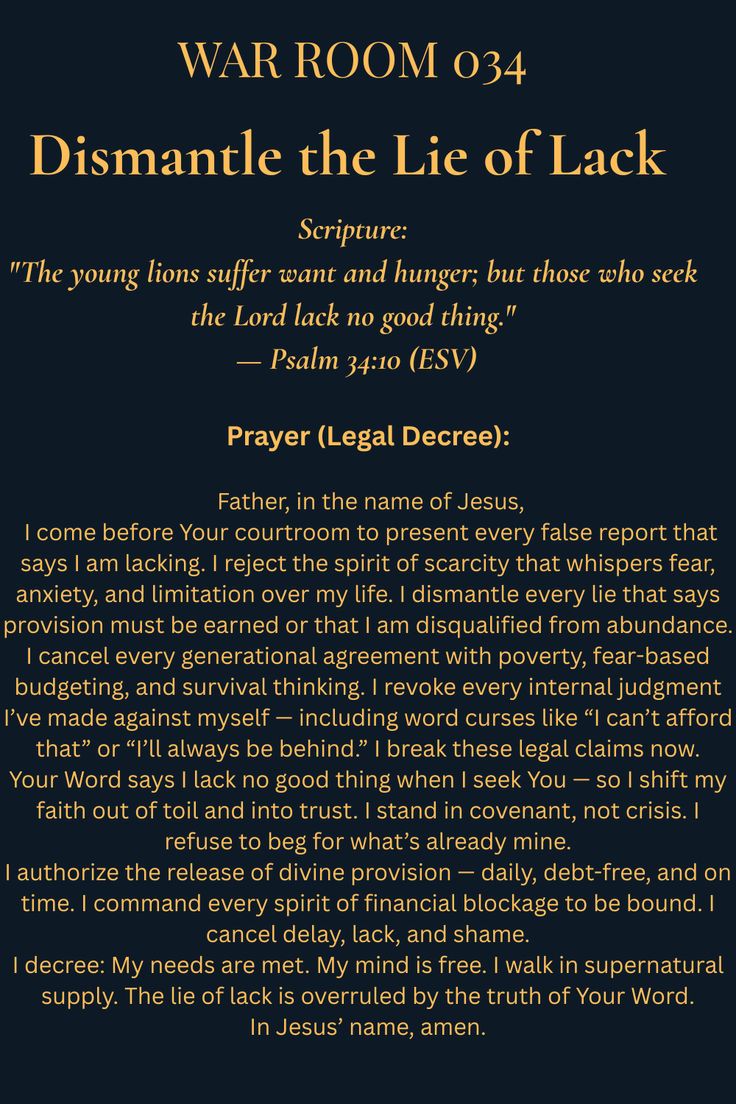 War Room 034: Dismantle the Lie of Lack (Psalm 34:10 Prayer + Abundance Devotional)