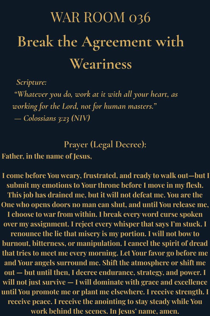 War Room 036: Break the Agreement with Weariness (Colossians 3:23 Prayer for Job Burnout)